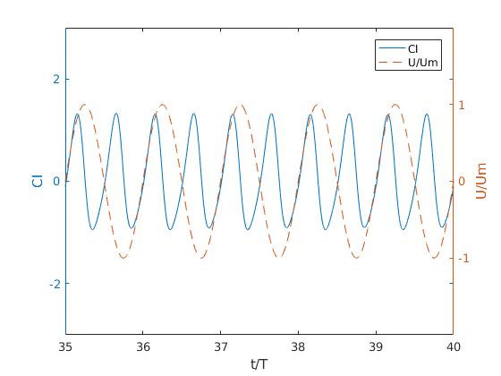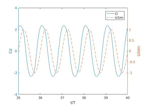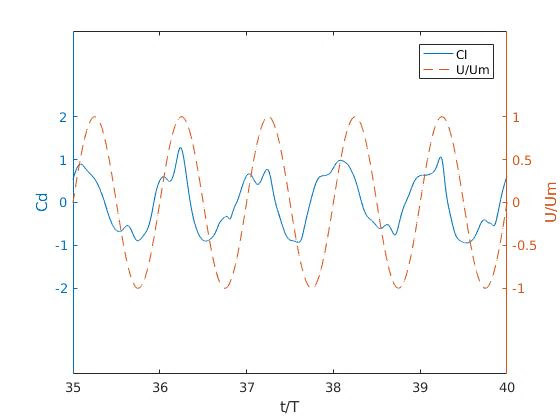 Flexible riser response prediction relies on semi-empirical models hindered by limitations due experimental data scarcity for particular modelling considerations. This paper presents a numerical-based approach for predicting the flexible riser response under oscillatory flows. A single freedom degree spring-mass-damper system is employed with the mass allowed to move in cross-flow direction. To discretize the Navier-Stokes equations the Finite Volume Method is used. To analyse the flow patterns in each regime the cylinder oscillating period is executed for long time. A bi-dimensional model is setting up using OpenFOAM simulations. Flow behavior, hydrodynamic forces and frequencies were analyzed for Reynolds values between 40-1000 using a KC number 7,9. For Reynolds less than 300 the behavior is in agreement with the literature. For Reynolds 300 or higher, some discrepancies appear in the system dynamics. The numerical results obtained from the numerical approach shows good agreement with experimental data collected from a flexible riser model.