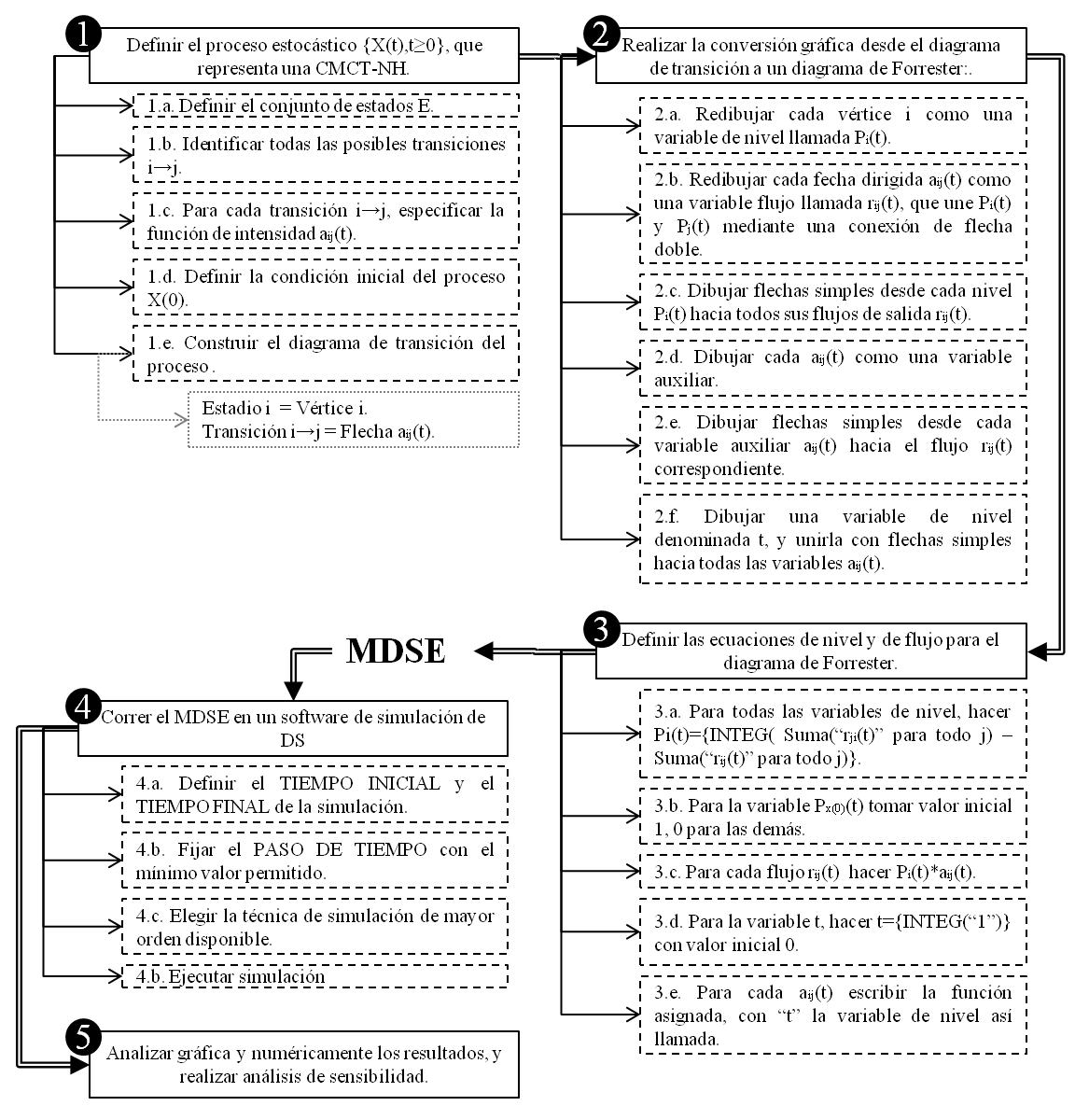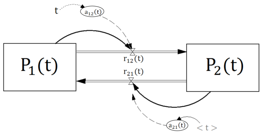 Modelo de dinámica de sistemas equivalente, Cadena de Markov de Tiempo Continuo – No Homogénea, Dinámica de Sistemas, Ecuación de flujo, Ecuación de nivel, Función de intensidad, Probabilidad de estado